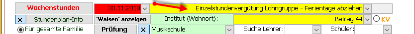 Eine Änderung der Formel 44/45*'Einheit' berücksichtigt beispielsweise zusätzlich die Unterrichtseinheit des erteilten Unterrichts. Bei Annahme, dass der Betrag 44.-- für die 45' Minuten Unterrichtsstunde gewährt wird, werden bei einer 30' Minuten Stunde dann nicht € 44.-- sondern €29,33 vergütet, bei einer 60' Minuten Stunde dann € 58,67.