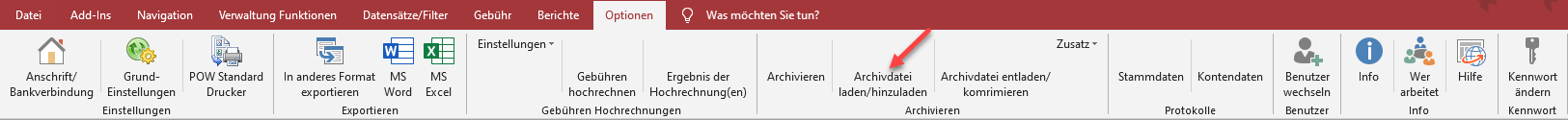 Bei geladener oder hinzugeladener Archivdatenbank können keine Änderungen an den Daten vorgenommen werden. Es ist aber möglich alle Auswertungen und Berichte auf die Daten anzuwenden.