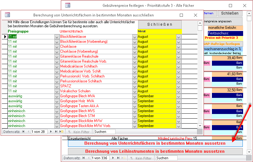 Dies kommt dann zur Anwendung, wenn Sie beispielsweise die Jahresgebühr auf elf Monate auslegen, und dann im Ferienmonat August keine Gebühr einziehen wollen.