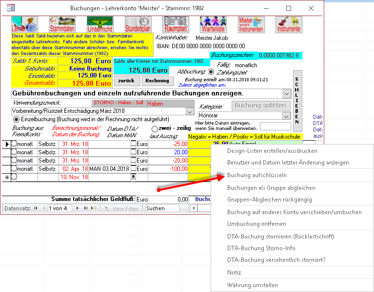 Über die rechte Maustaste kann für jede automatische Buchung die Aufschlüsselung angezeigt werden, wie sich der Buchungsbetrag zusammensetzt.