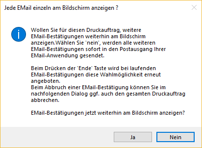 Die erste Mail wird am Bildschirm angezeigt und kann gesendet werden.