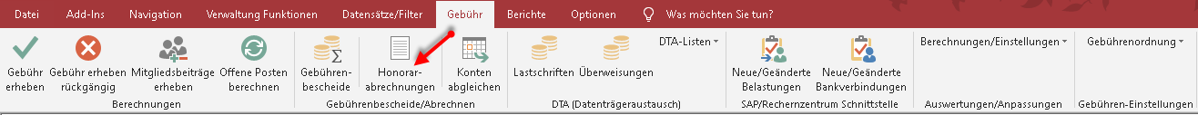 Mit diesem Menüpunkt können Sie Honorarabrechnungen für die Lehrer anfertigen.