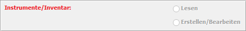 Der Benutzer benötigt die Berechtigung 'Instrumente/Inventar Lesen' um die Instrumenten/Inventarliste zu lesen, oder Instrumenten/Inventarberichte zu erstellen.