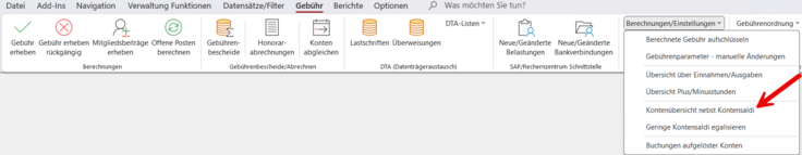 Öffnen Sie zunächst die Liste aller Konten (roter Pfeil)