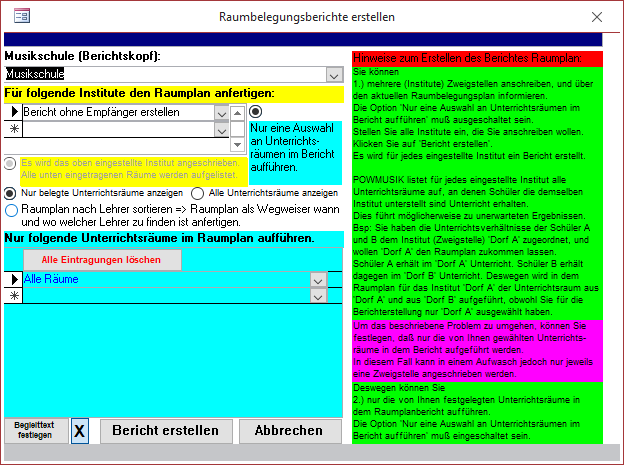 · Es können wahlweise alle zur Verfügung stehenden Unterrichtsräume oder nur belegte Unterrichtsräume aufgeführt werden.