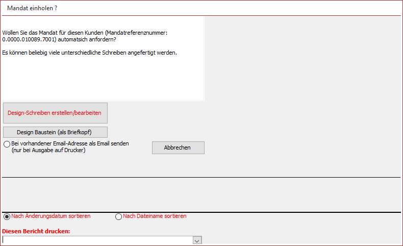 Sie erhalten dann sofort das Angebot, das Mandat per Brief oder Email einzuholen.