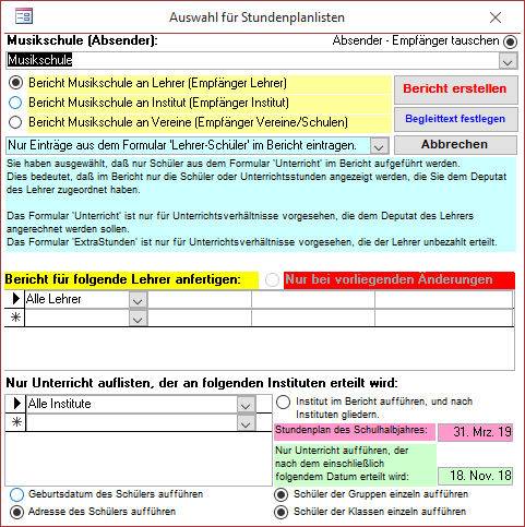 Mit diesem Bericht können Sie den Stundenplan von allen oder einem beliebigen Lehrer ausdrucken.
