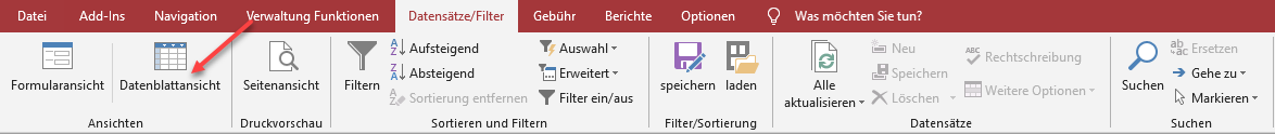 Wechseln Sie in die Datenblattansicht