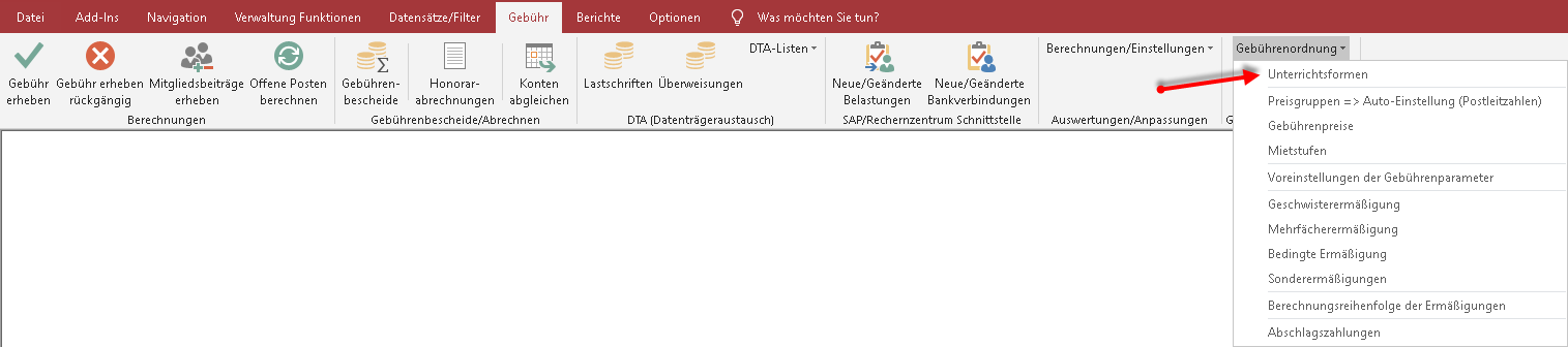 Stellen Sie alle an Ihrer Musikschule angebotenen Unterrichtsformen ein.