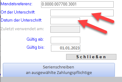 Sobald Sie das neue Mandat vom Kunden wieder haben, füllen Sie dann die Felder Ort und Datum der Unterschrift aus um das Mandat zu aktivieren.