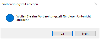 Sie erhalten jetzt das Angebot automatisch eine Vorbereitungszeit zu erstellen und diese gleichzeitig mit dem Unterricht zu verknüpfen.
