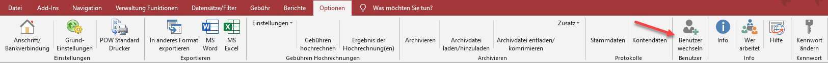 Hier können Sie bei geöffnetem POWMUSIK den Benutzer wechseln.