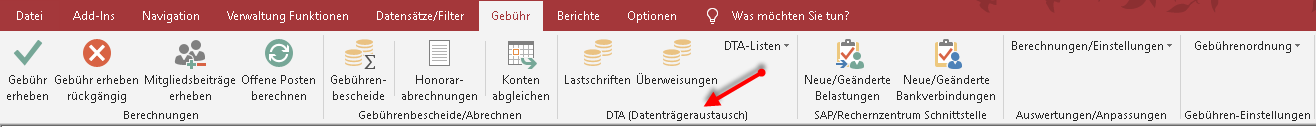 Beim Ausführen von DTA-Lastschriften oder DTA-Überweisungen werden die betroffenen Buchungen automatisch abgeglichen, und es wird das DTA-Datum der Buchung festgehalten.