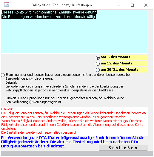 Fälligkeit des Kontos einstellen