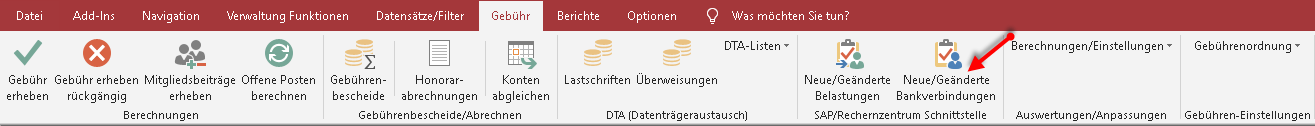 Neue/Geänderte Bankverbindungen' ausgeführt wird.