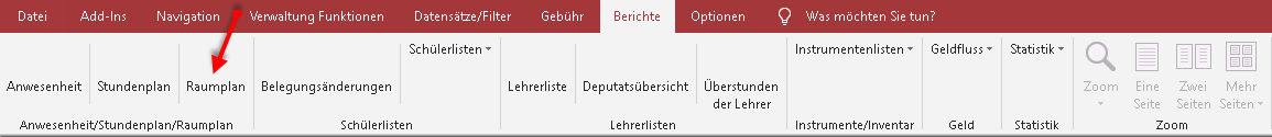 Mit diesem Bericht können Sie den Raumbelegungsplan von ihren Unterrichtsräumen bzw. auch Unterrichtsgebäuden ausdrucken.