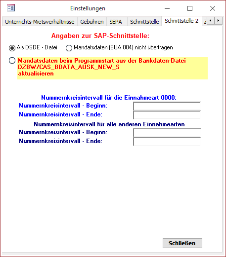 Im Register Schnittstelle 2 können Sie weitere Einstellungen zur Verwaltung der SEPA-Daten über die Schnittstelle vornehmen.