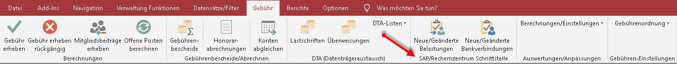 Beim Ausführen (Drucken) der Soll-Liste und damit verbundenem Erzeugen einer (SAP)-Schnittstellendatei zur Weitergabe an das Rechenzentrum werden die betroffenen Buchungen automatisch abgeglichen, und es wird das REZ-Datum (Rechenzentrum) der Buchung festgehalten.