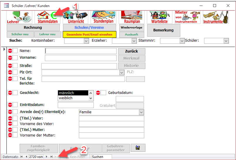 Anlegen von Stammmdaten des Typs Schüler