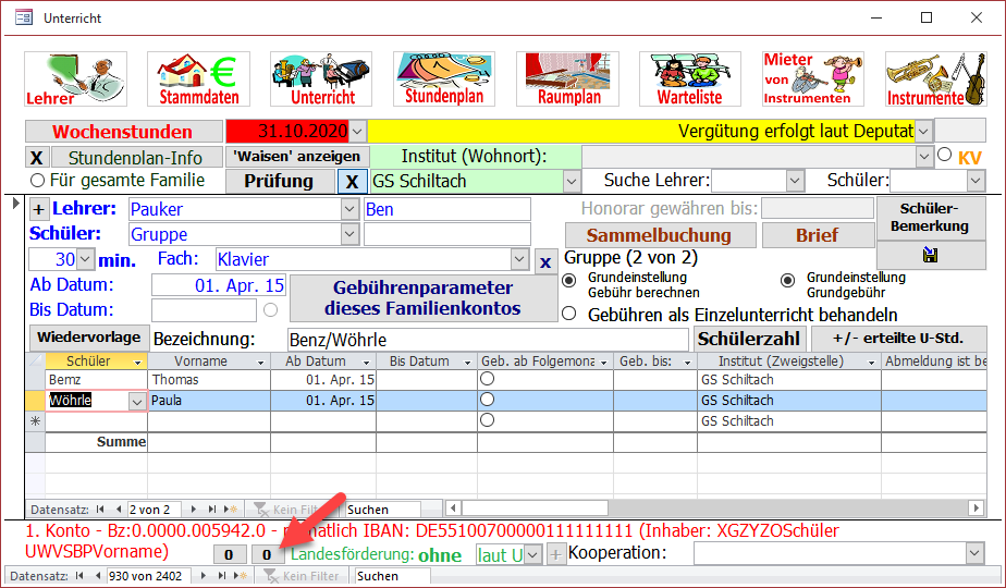 Bringen Sie im Formular Unterricht das Unterrichtsverhältnis zur Anzeige, für welches Sie eine Vorbereitungszeit gewähren wollen.